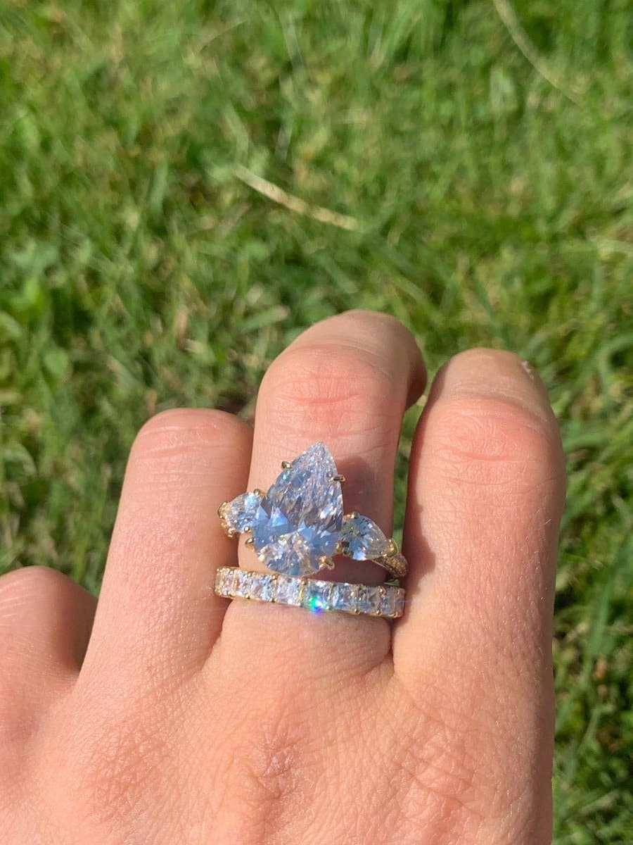 • Load image into Gallery viewer, Pear Cut Diamond Imitation Silver Ring Kim