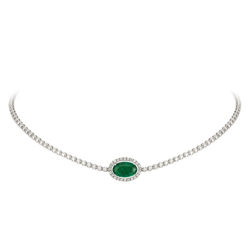 Breathtaking Diamond 18K White Gold Necklace with Emerald for Her