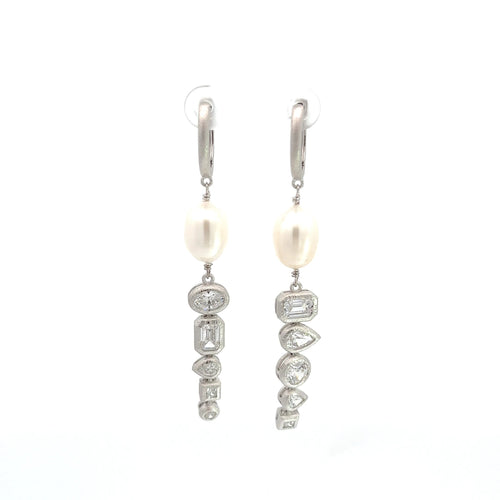 Matt Dangling Pearl Silver Earrings