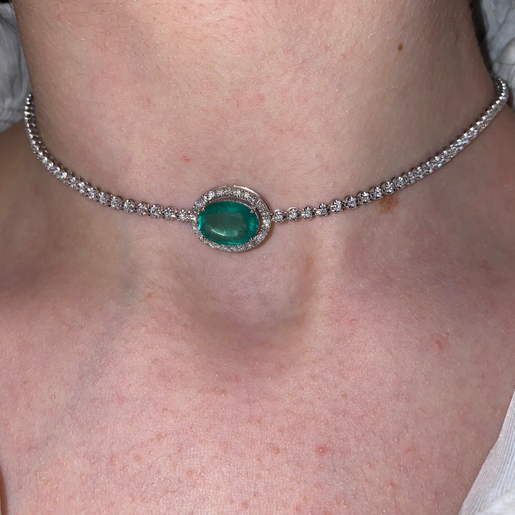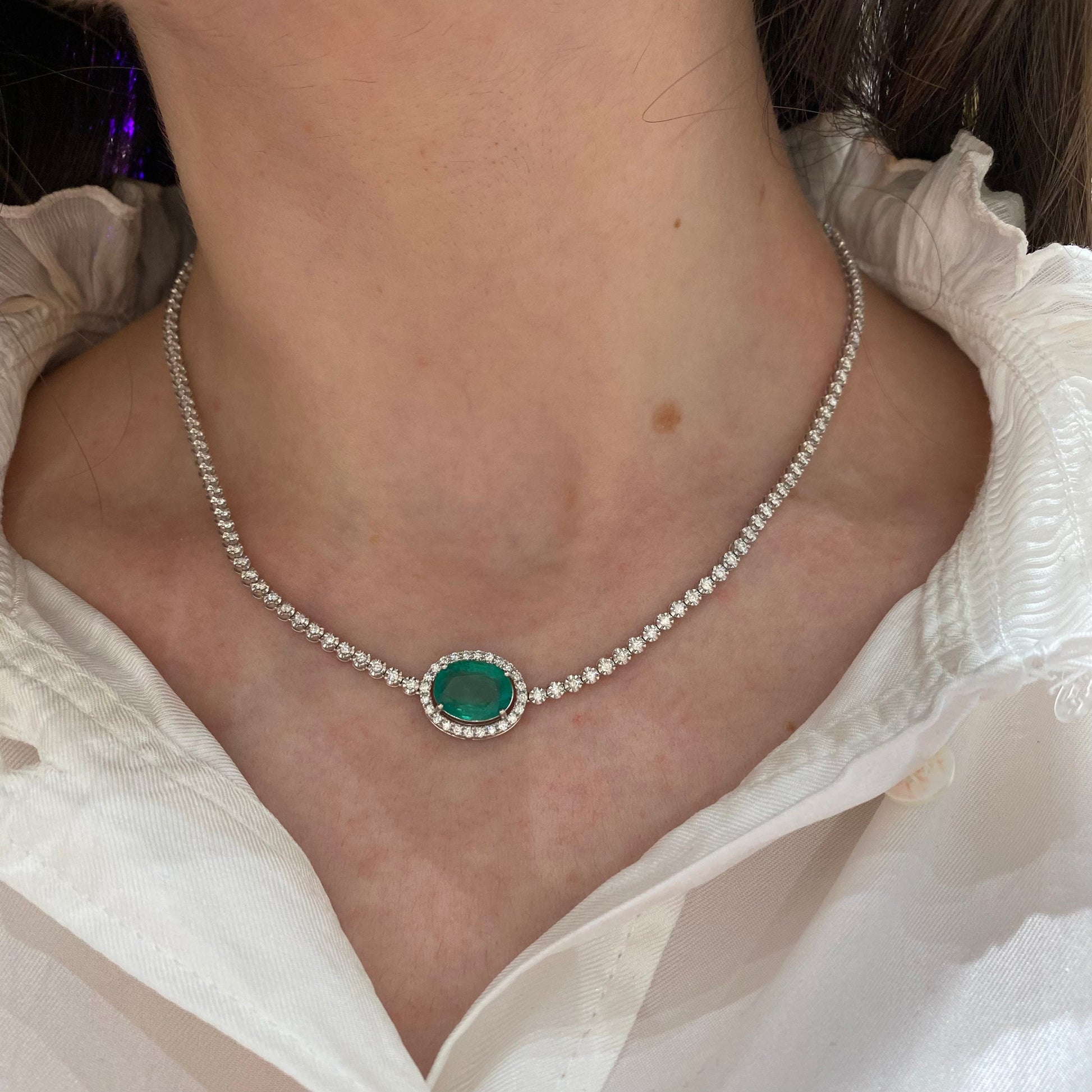 Breathtaking Diamond 18K White Gold Necklace with Emerald for Her
