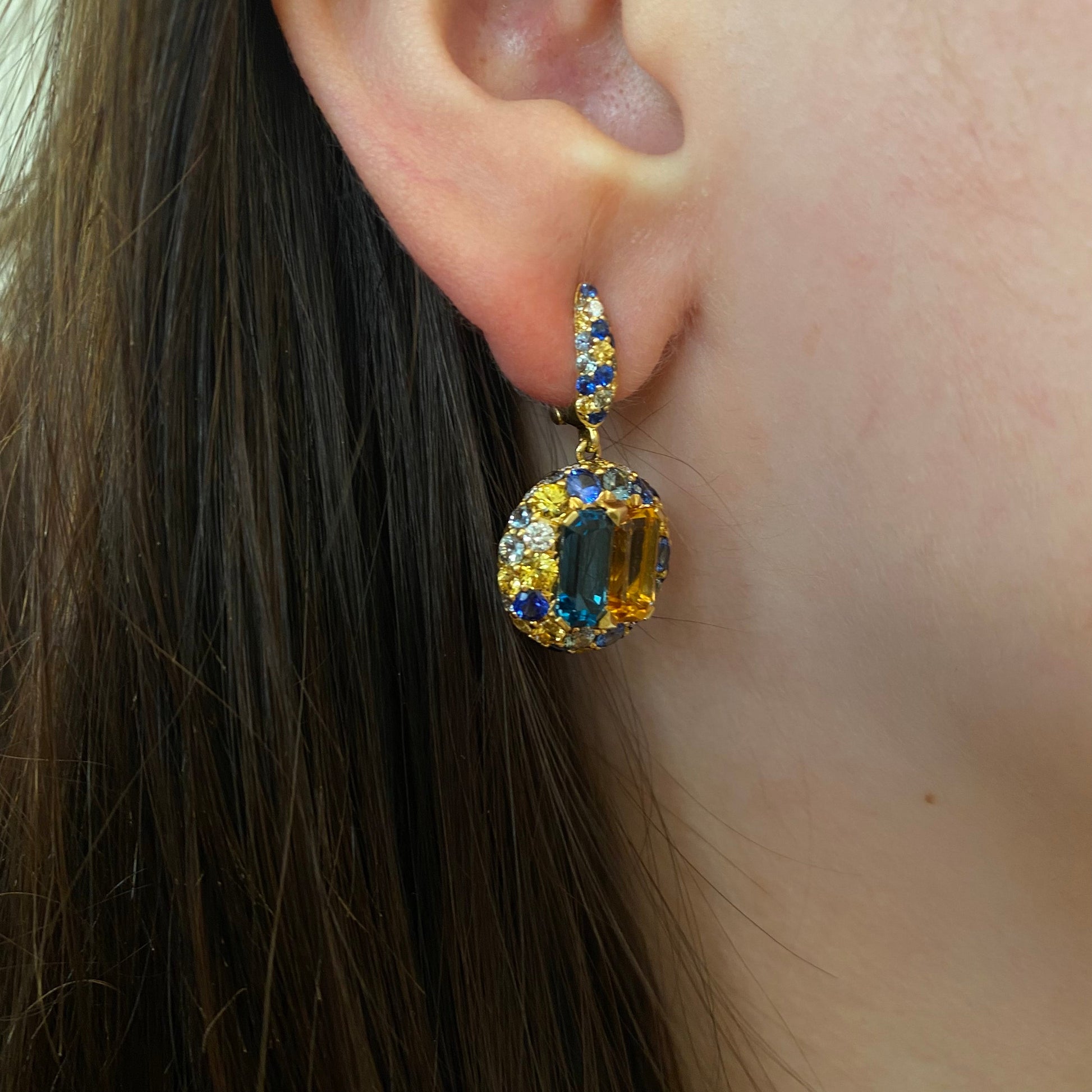Ukrainian Collection Heritage Citrine Sapphire 18 Karat Gold Diamond Earrings