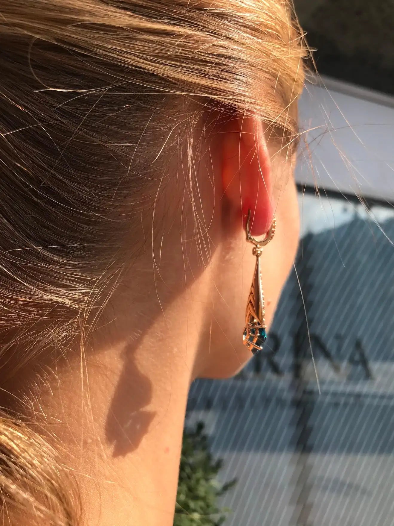 Ukrainian Yellow Orange Sapphire Blue Topaz 18 Karat Gold Diamond Drop Earrings